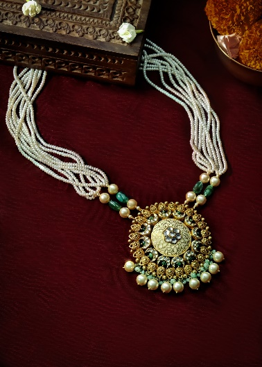 Turn your wedding into a Bollywood extravaganza with this Classic Sphere Antique Gold Sitahar Necklace. The 18K gold sitahar necklace, fashioned as a spherical pattern embellished with kundan has become a go-to choice for brides who want to make a statement.