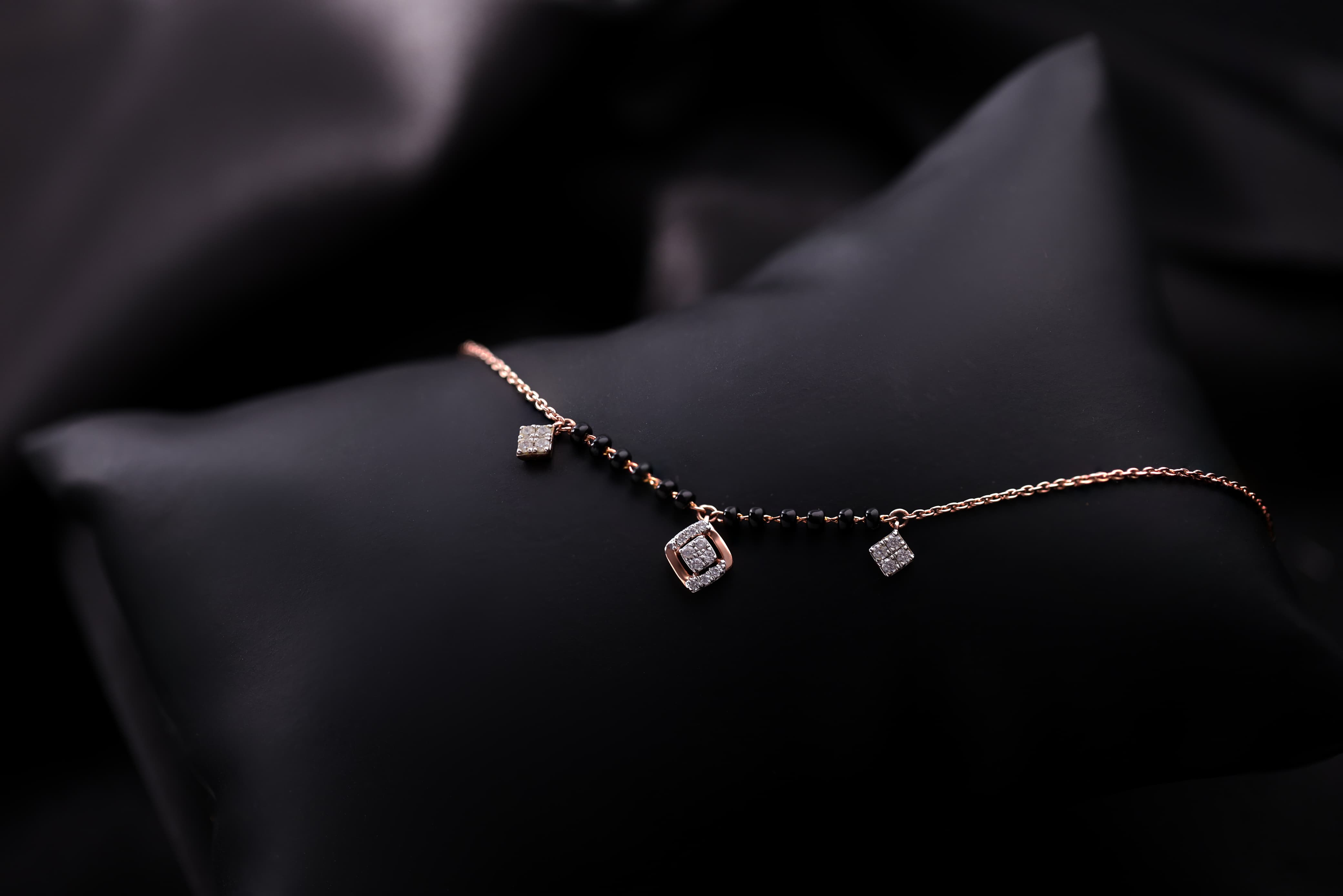 The fusion of tradition and modernity, this exquisite Soaring Shine Diamond Bracelet is reinvented for the discerning women of today. Crafted with intricate kite patterns in 14K rose gold, this 0.16 carat diamond bracelet is adorned with delicate black beads that exude a sense of refined sophistication.