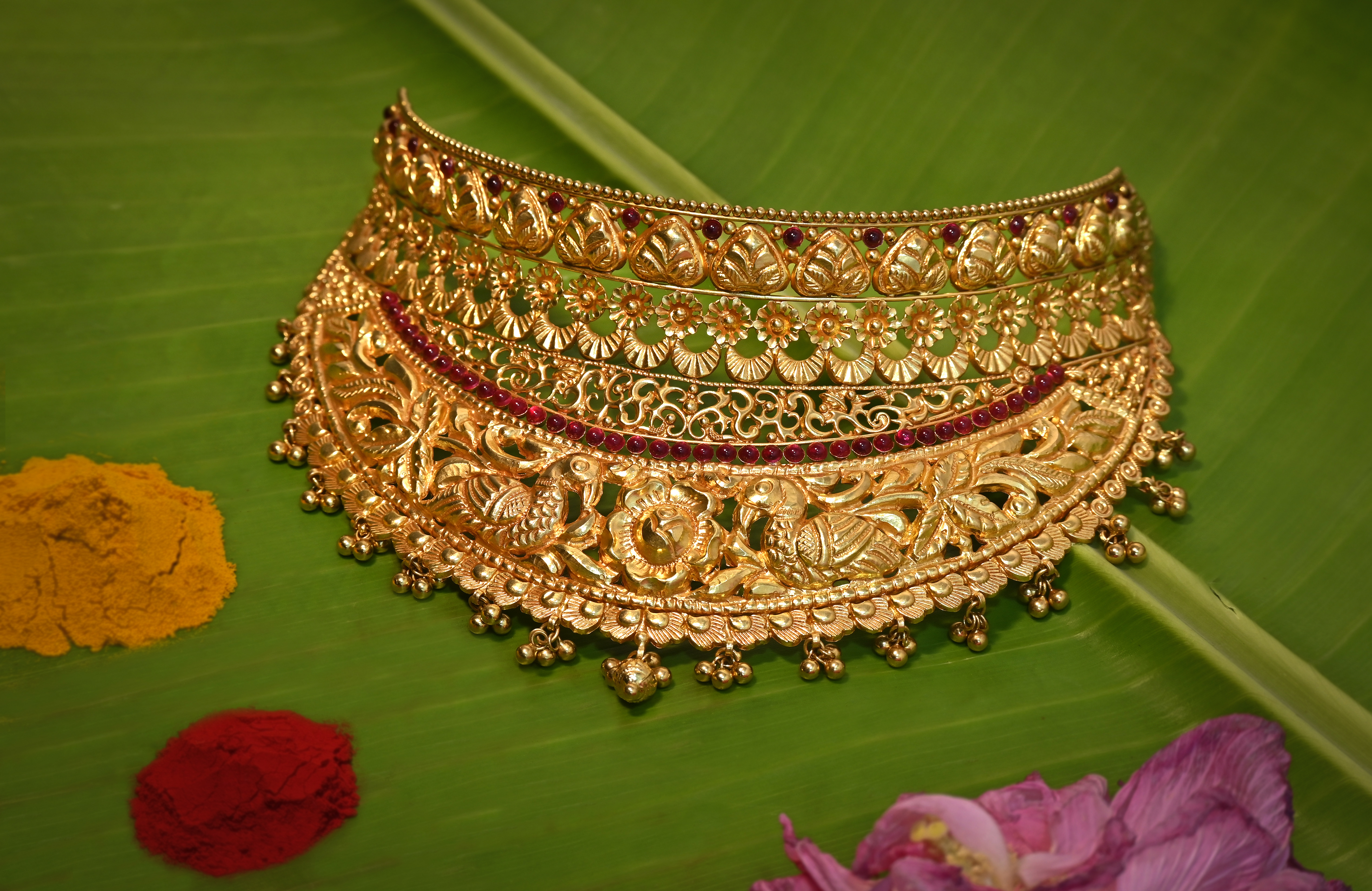 With its timeless appeal, Nakshikari Glaze Gold Choker can be an excellent choice for brides. This 22K gold choker necklace has been crafted using nakshi work all over which makes it a testament to the universal appeal and appreciation for traditional art forms.