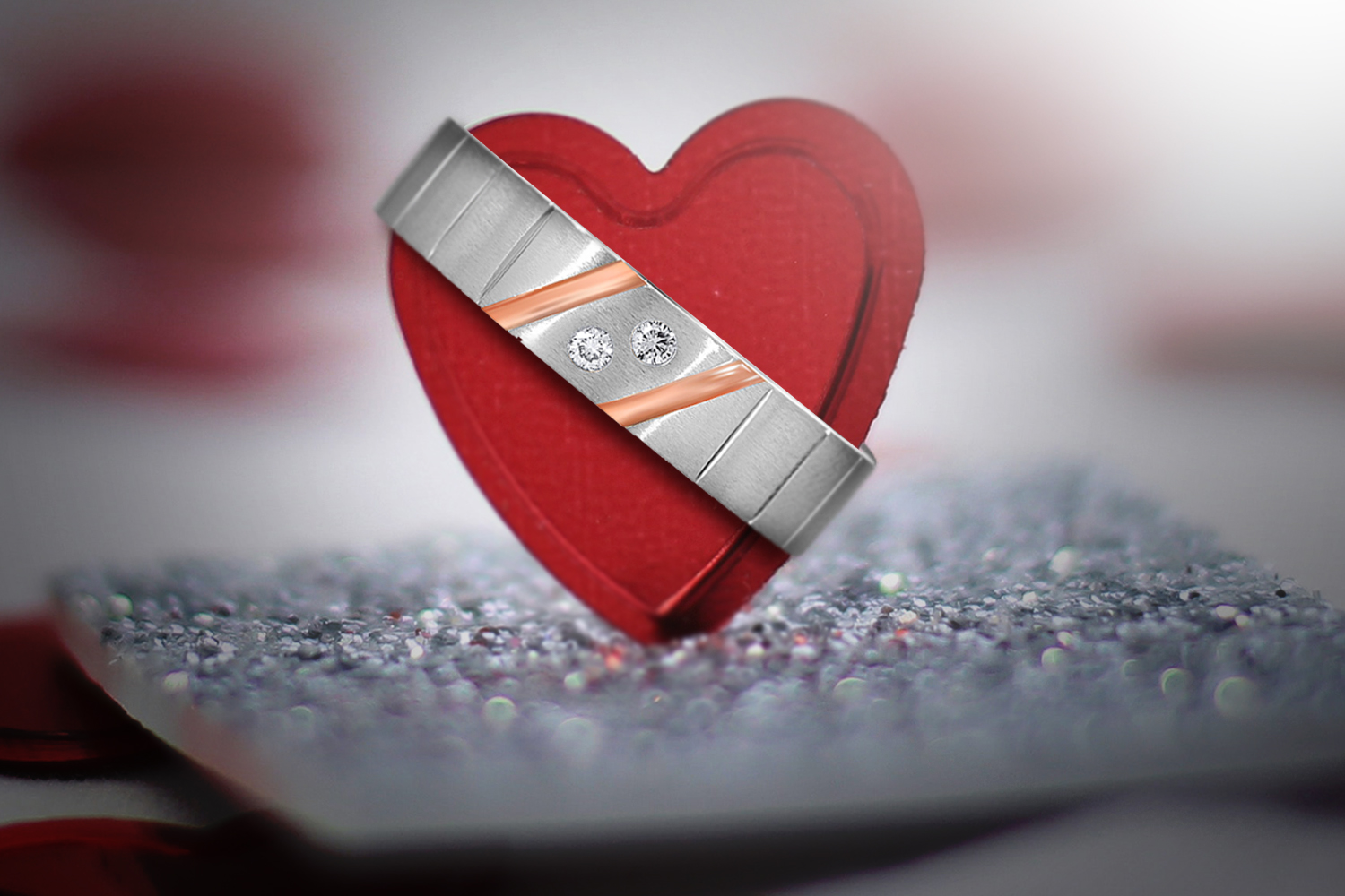 The Virile Duo Men Platinum Band Ring and Journey to Shine Platinum Band Ring have shimmering diamonds in the middle and the curved linear paths with the touch of 18K rose gold make these band rings indeed praiseworthy. Can be worn daily.