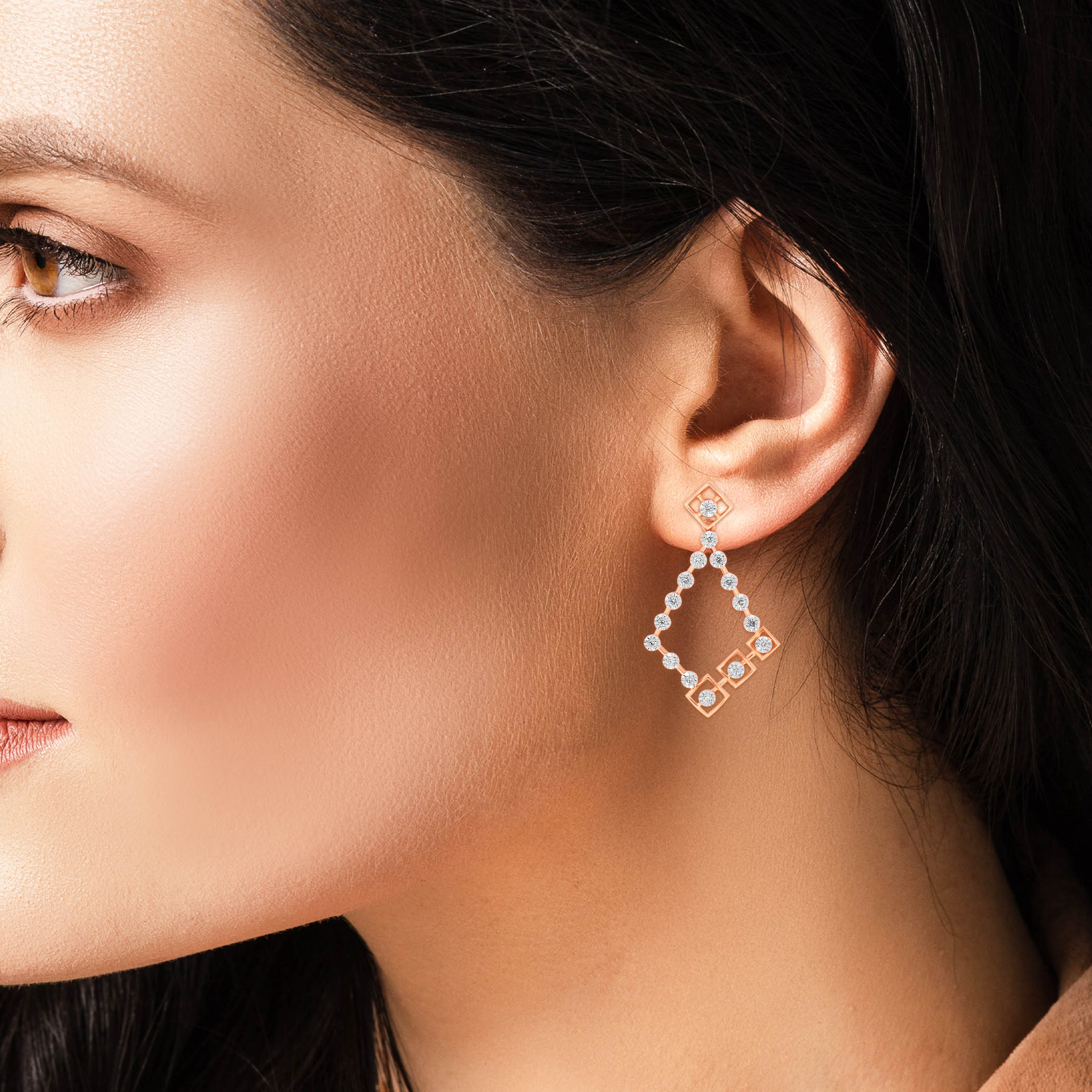 Make a statement with these eye-catching earrings. The angular design, crafted in gold and embellished with brilliant diamonds, offers a contemporary and sophisticated appeal. Wear them with a sleek bun and a structured dress for a polished, modern look.