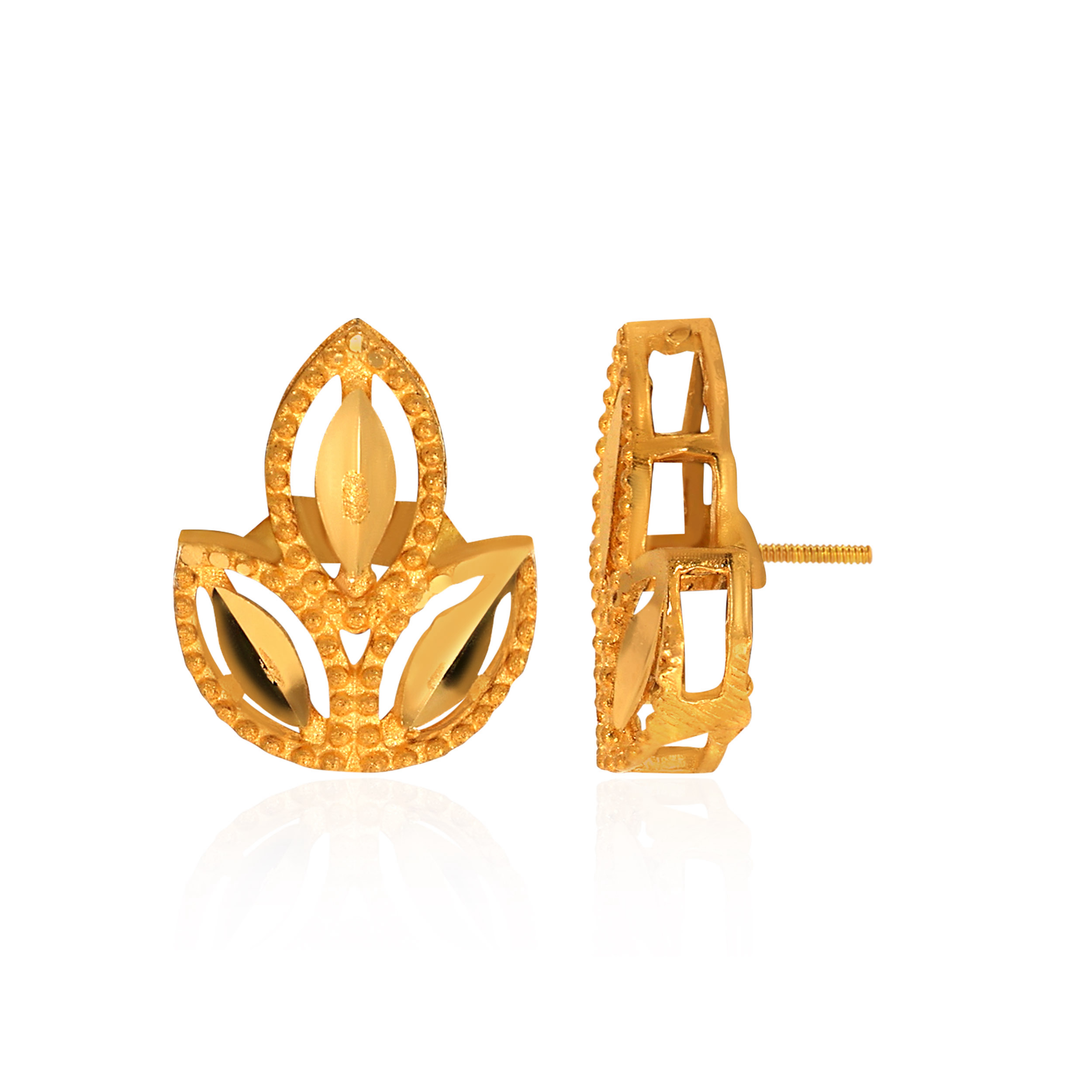 The divine flame of an illuminated diya has inspired us to craft these 22K gold studs with a dual gold finish. Add a touch of spiritual elegance to your everyday look with these earrings.