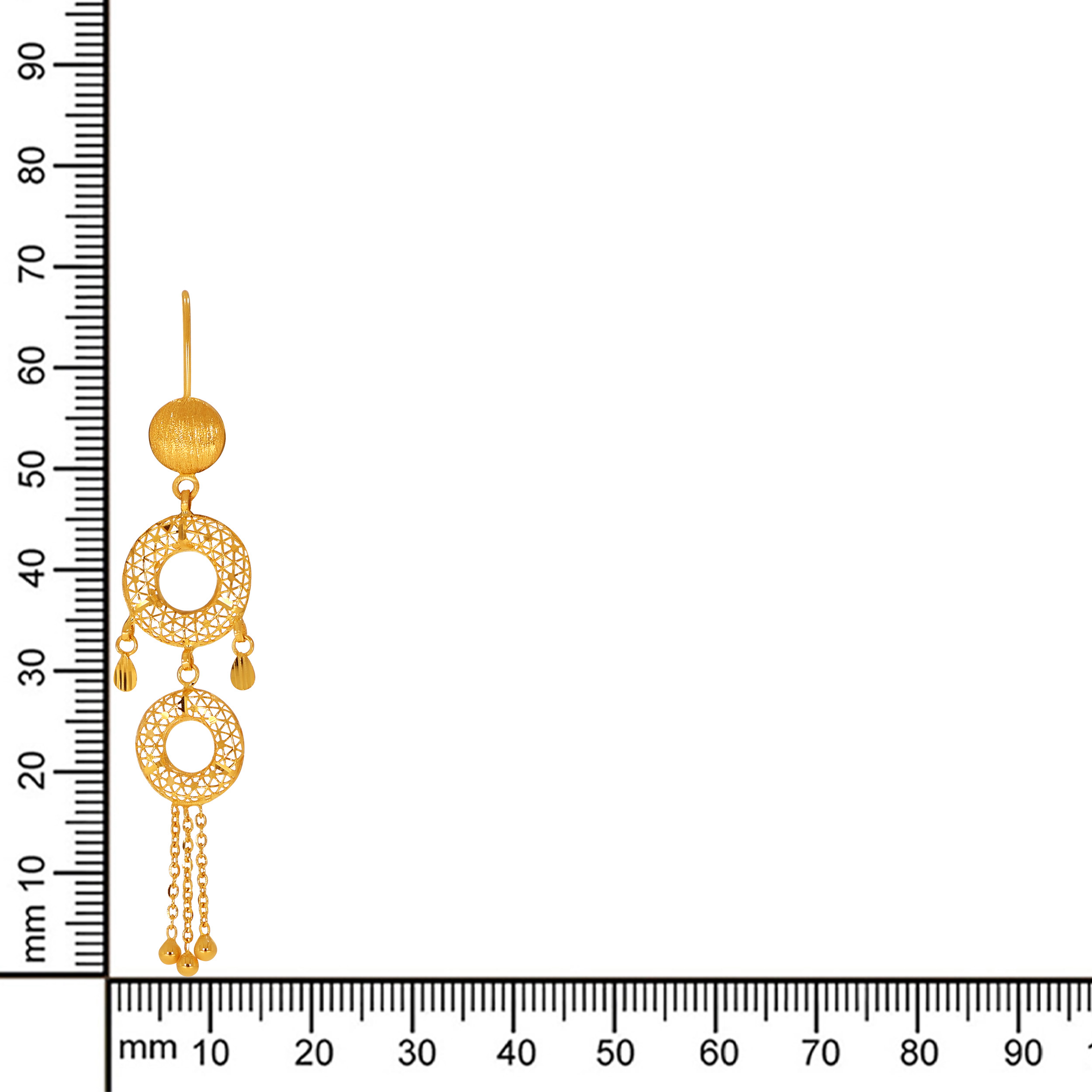 These 22K gold hoop earrings will add a refined touch to any occasion with intricate 3D gold work. The meticulously crafted dreamcatcher motif adds depth and dimension to the design.