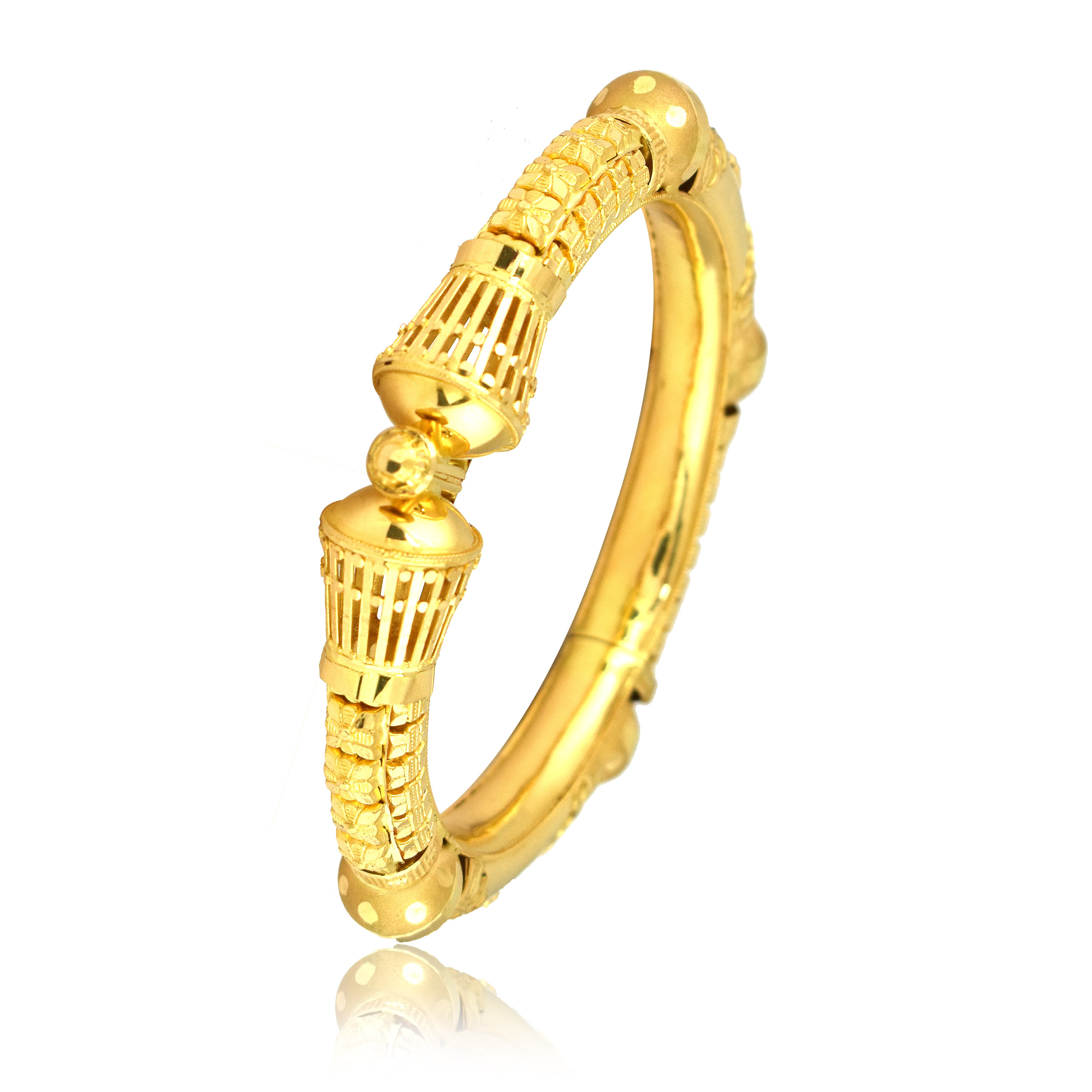 Women always wonder to groom themselves with a piece of exclusive jewelry that will be traditional by the look and modern by its design. And this gold special bangle crafted with floral design, gold network, and matt effect made the entire jewel converted to an unparalleled ornament.