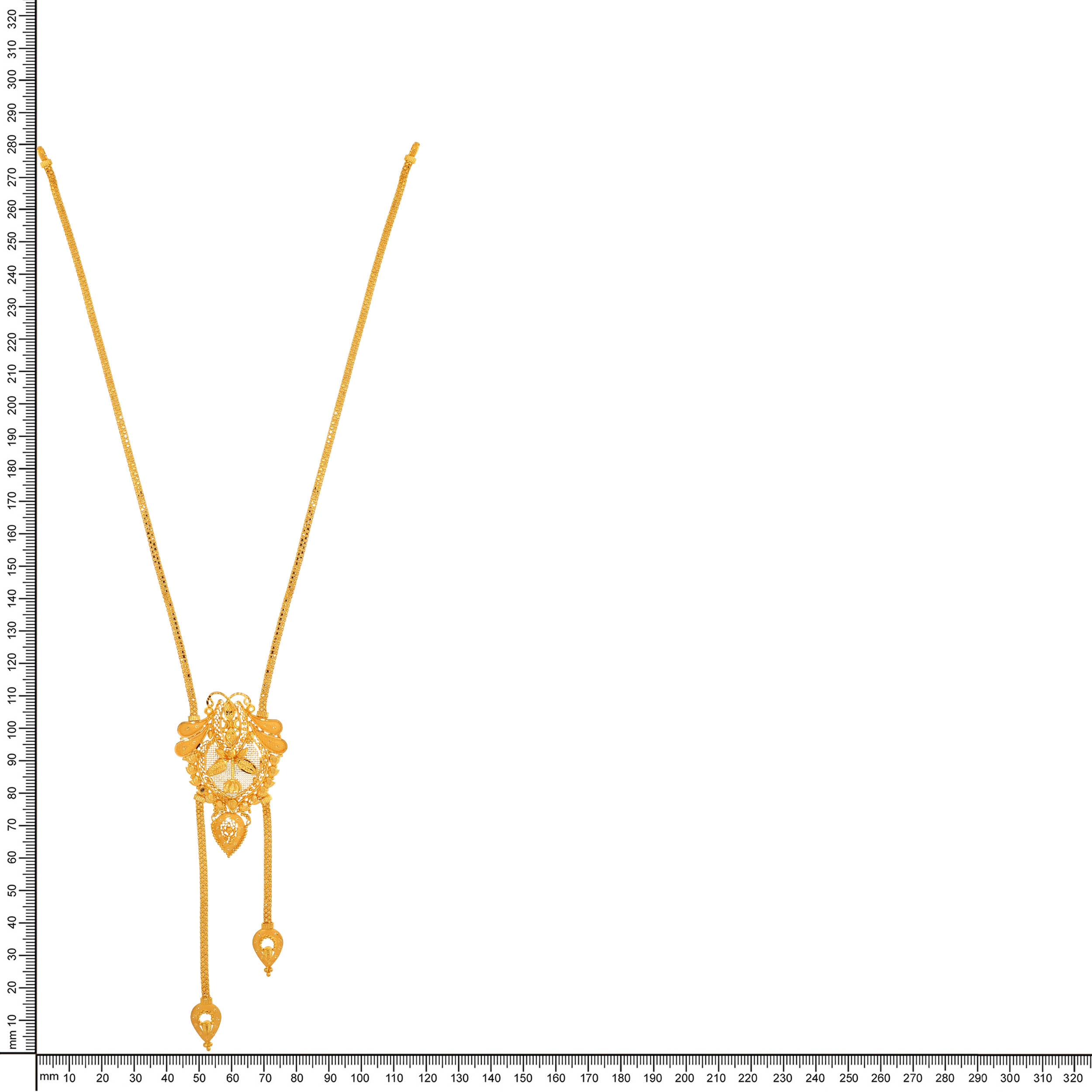 Crafted with versatile patterns, this 22K gold necklace is a timeless piece with a dual gold finish, gold net work, filigree and leaf patterns. Flaunt it as a statement piece or layer it with other traditional necklaces or a choker.
