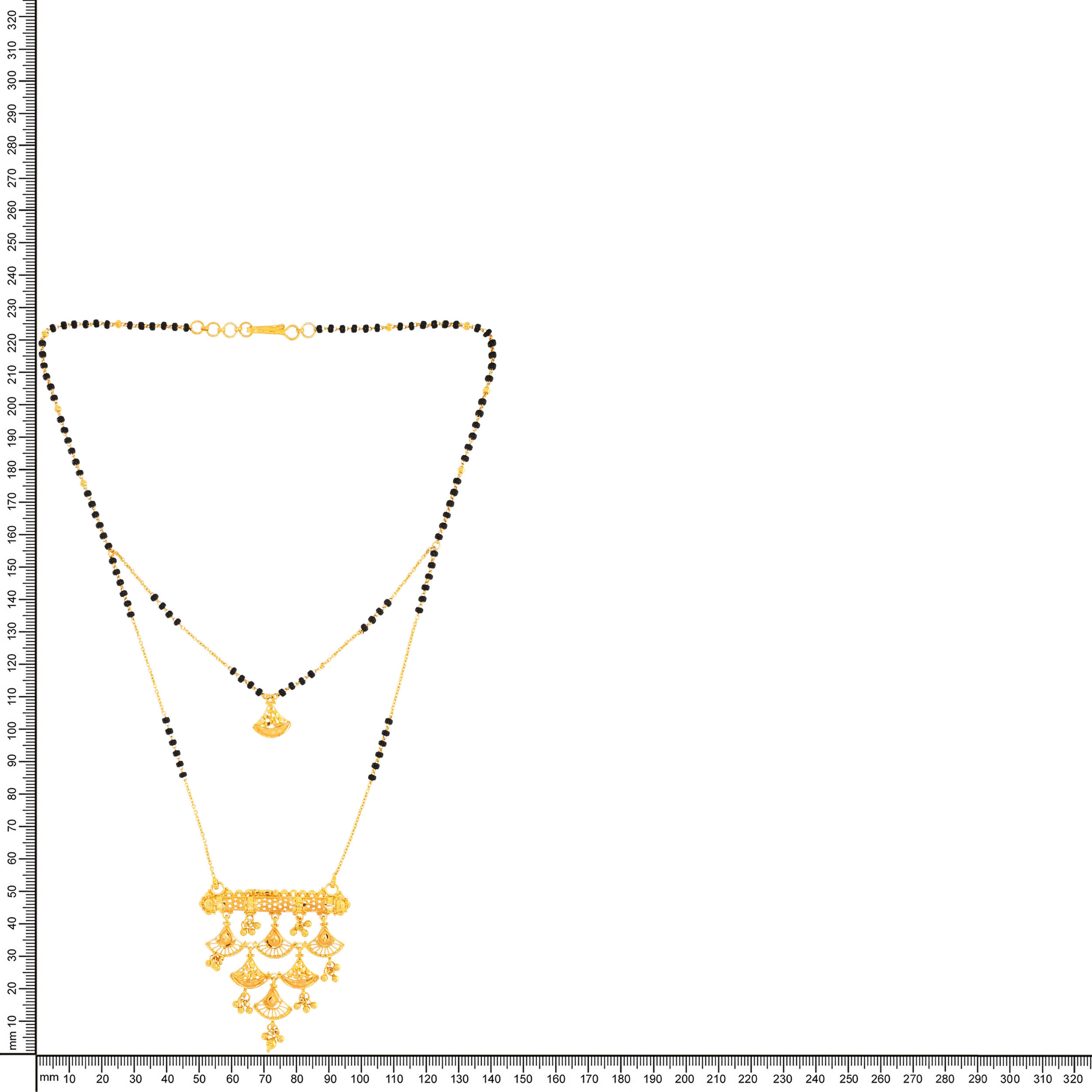 Elevate your style and flaunt your marital status with this two layered 22K gold mangalsutra designed to lend an air of delicate sophistication to every traditional ensemble. The dangling flared patterns capture the essence of modern femininity.