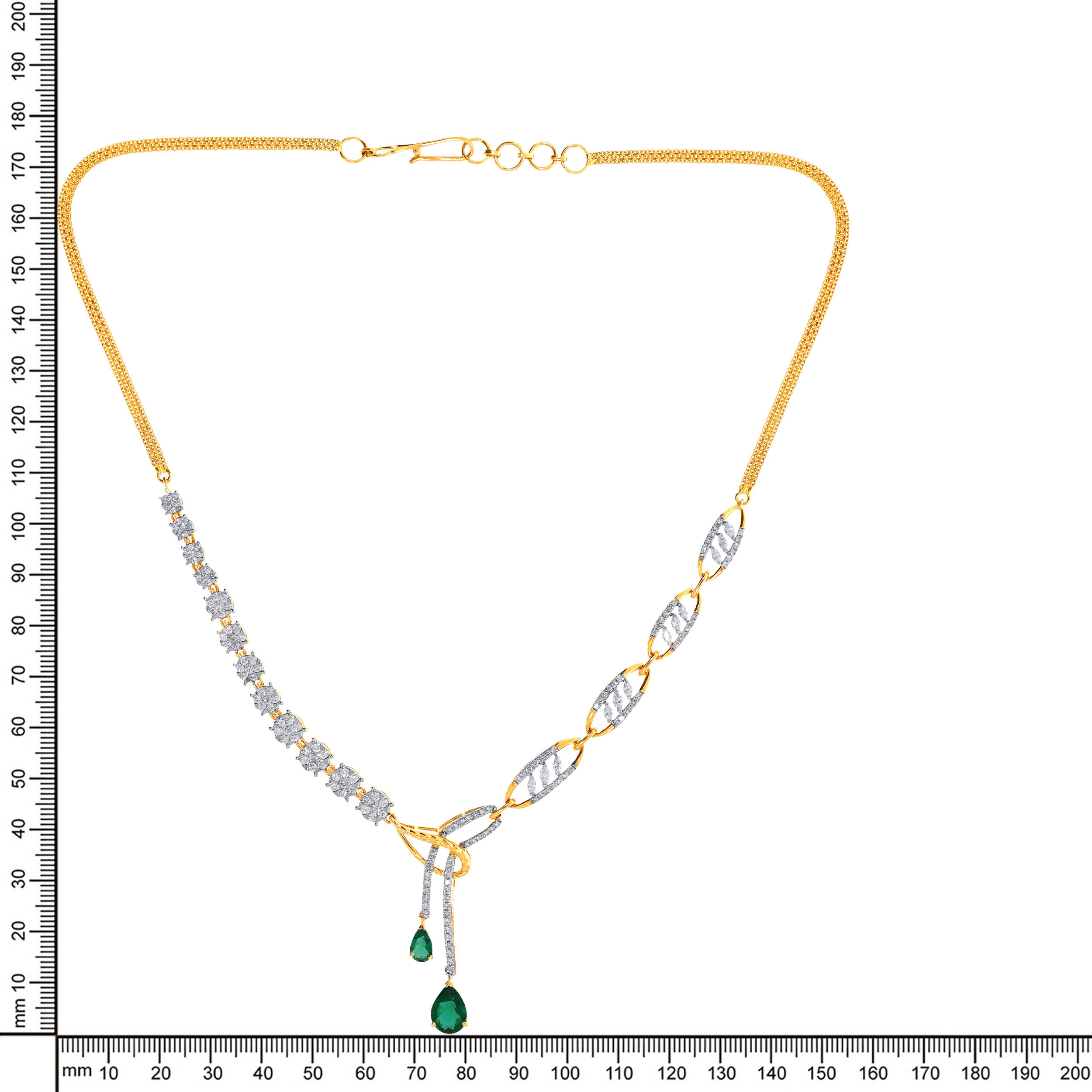 Captivate all eyes and leave a lasting impression with this stylish diamond necklace encrusted with 2.1 carat diamonds in 14K gold. The greenish semi-precious stones make this sleek necklace a true embodiment of vibrant allure.
