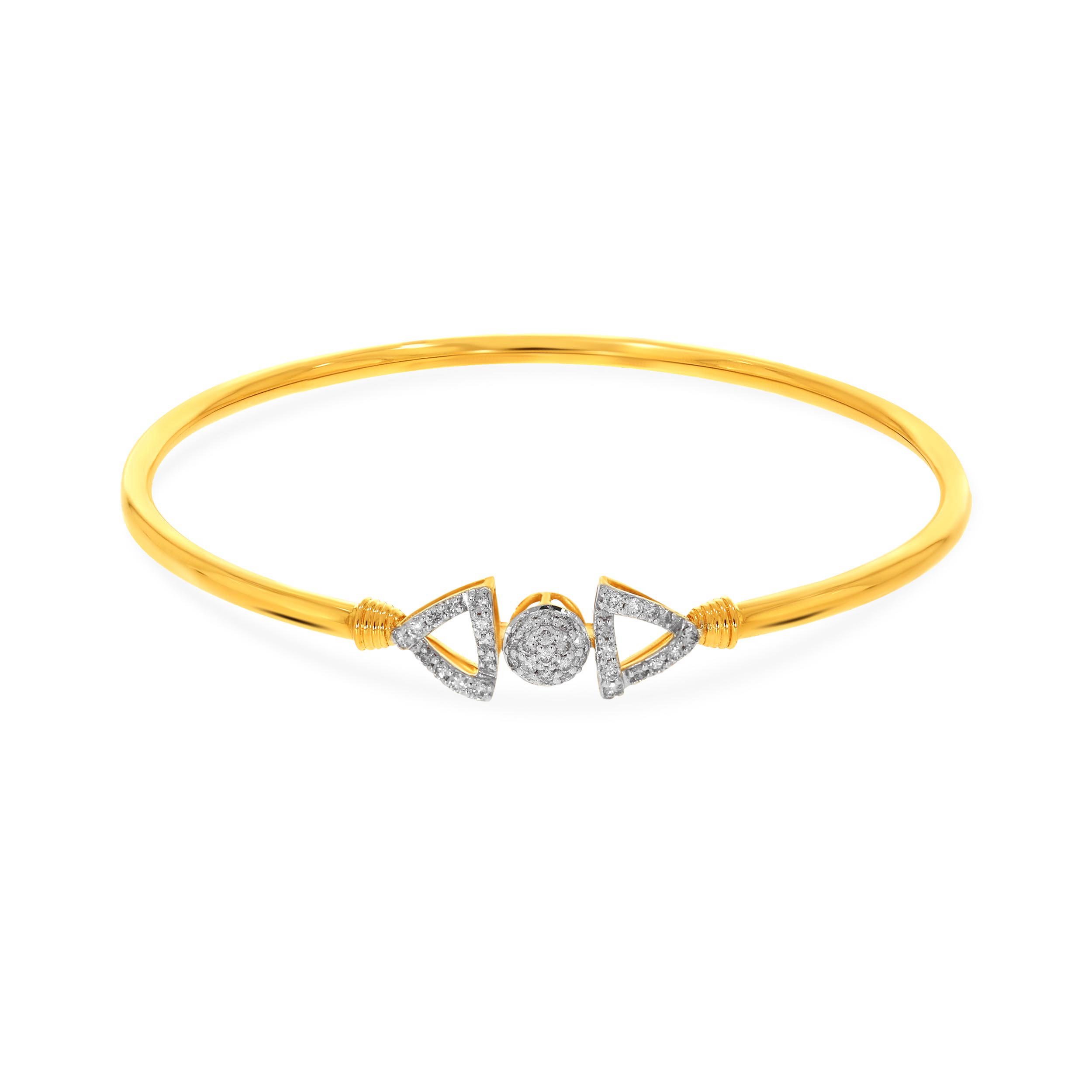 The sleek geometric pattern sets apart this diamond noa bangle from traditional noa bangles. Encrusted with 0.47 carat diamonds in 18K gold, this bangle showcases the perfect blend of modern design and timeless elegance.
