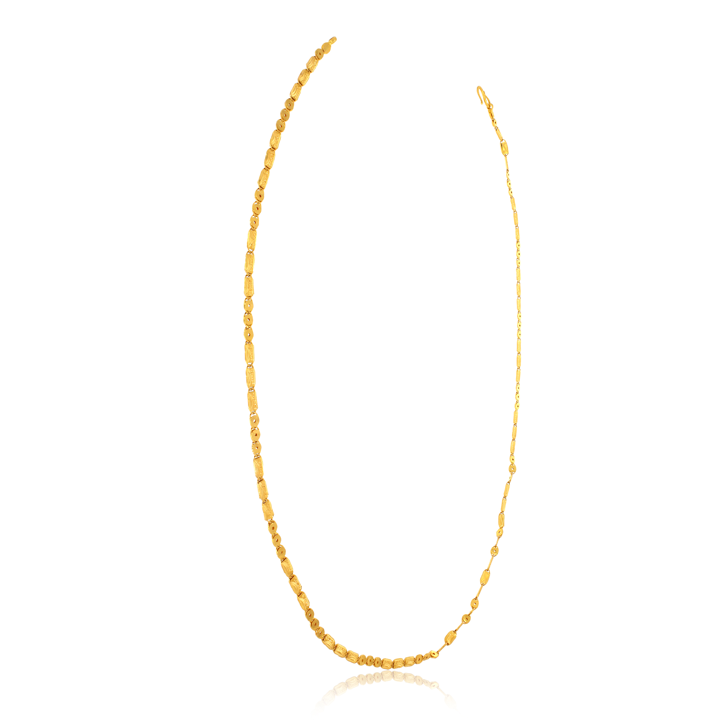This versatile gold chain is a much-needed addition to your jewellery box. The pattern of this chain is exquisite and highly commendable. Adorn it with a western gown at the party to exude your charm.